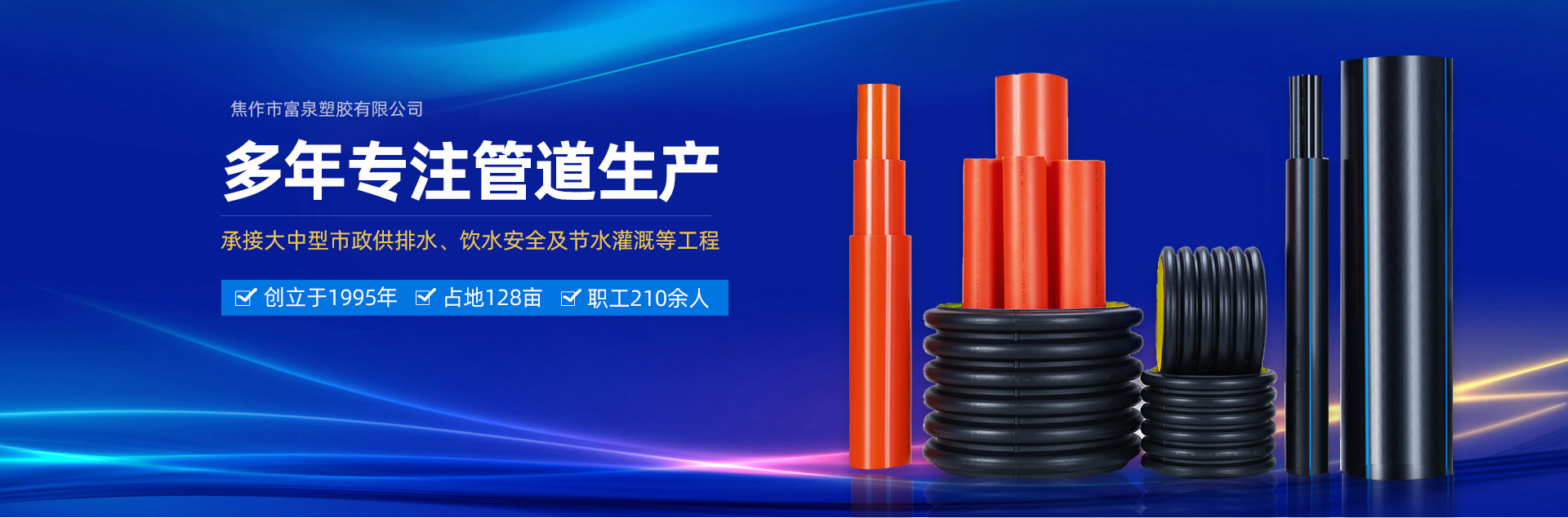 - 焦作市富泉塑膠有限公司,創立于1995年,是一家集研發(fā)、設計、生產、銷售為一體的大型管材企業。公司位于太極故里、黃河之濱一一河南焦作溫縣。公司占地128畝,現有職工210余人,其中具有中技術職稱的19人。生產、檢驗設備58臺(套),包括PVC實壁管生產線11套、PE實壁管生產線12套、HDPE雙壁波紋管生產線6套、PVC雙壁波紋管生產線5套,檢驗設備14臺(套)。主要產品有:Φ20mm-630mm、各種壓力規(guī)格的PVCU、PVC-M、PE給水管材,PVC-U節(jié)水灌溉管材,HDPE燃氣和礦用管材,DN200-800mm的HDPE、PVC雙壁波紋管及各種噴灌、滴灌工程材料。承接大中型市政供排水、飲水安全及節(jié)水灌溉等工程。 富泉塑膠公司重視產品的質量、安全、環(huán)保和節(jié)能,在同行業中率先完成了“新華節(jié)水產品認證”,全方面通過ISO9001:2008國際質量管理體系、IS014001:2004環(huán)境管理體系和OHSAS18001職業健康安全管理體系的一體化導入,并建立起規(guī)范的現代企業管理體系。公司以“質量”為先導,采用質量跟蹤、多環(huán)節(jié)把關的方法,組建具有行業水準的企業技術檢測中心,常年委托水利部節(jié)水灌溉設備檢測中心、河南省產品質量監(jiān)督檢驗院對產品跟蹤檢測,并由中國人民保險公司承保產品質量。公司連續多年被河南省水利廳確定為“安全飲水設備、節(jié)水灌溉設備”定點生產企業,并獲得“中國名優(yōu)產品”“質量、服務、信譽AAA企業”“河南省**產品”“河南省水利企業”“河南省守合同、重信用企業”等榮譽稱號?! 「蝗苣z公司堅持“用戶為上”的服務理念,長期以來,全方面關注客戶價值,不斷提升服務水平。服務隊伍常年為客戶的產品設計、施工、安裝提供合理的方案和全程細致、周到、**、快捷的技術服務。公司自成立以來,一直堅持以人為本的宗旨,塑造企業形象,并致力于新產品的開發(fā),憑借雄厚的技術開發(fā)能力,先進的工藝制造流程,嚴格的質量管理保證體系,優(yōu)良的售后服務網絡,已成為河南省大的飲水、灌溉及排水管材設備制造商。產品暢銷全國,而且還以公司雄厚的綜合實力在業界中占據著重要的地位。
